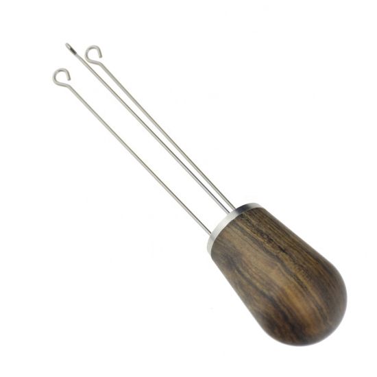 Εργαλείο ισοκατανομής καφέ με βελόνες από ανοξείδωτο ατσάλι και εργονομική λαβή από ξύλο. Περιστρέφοντας της τρεις μεταλλικές βελόνες εξασφαλίζουμε καλύτερη και περισσότερο ομοιόμορφη κατανομή του καφέ στο κλείστρο, ενώ η καμπυλωτή τους άκρη δε φθείρει και δεν γρατσουνά τις ευαίσθητες επιφάνειες.