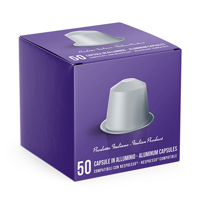 Κάθε συσκευασία περιλαμβάνει 50 κάψουλες αλουμινίου συμβατές με μηχανές Nespresso.